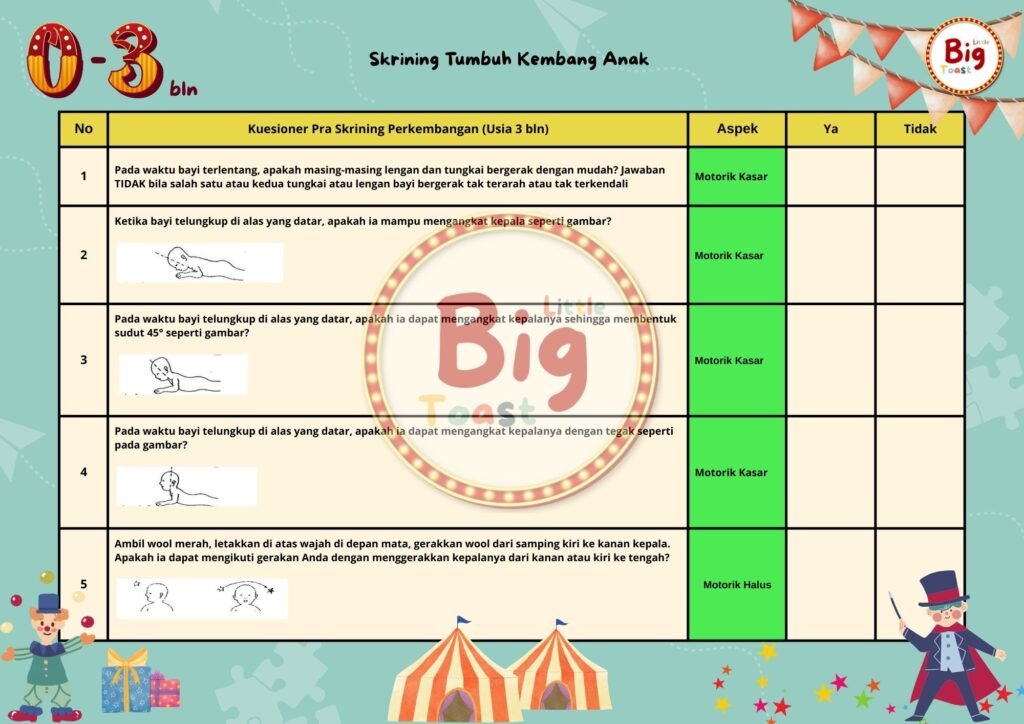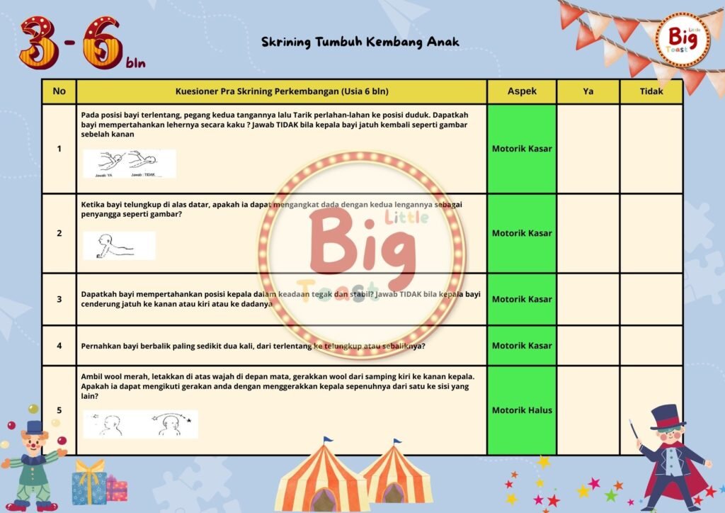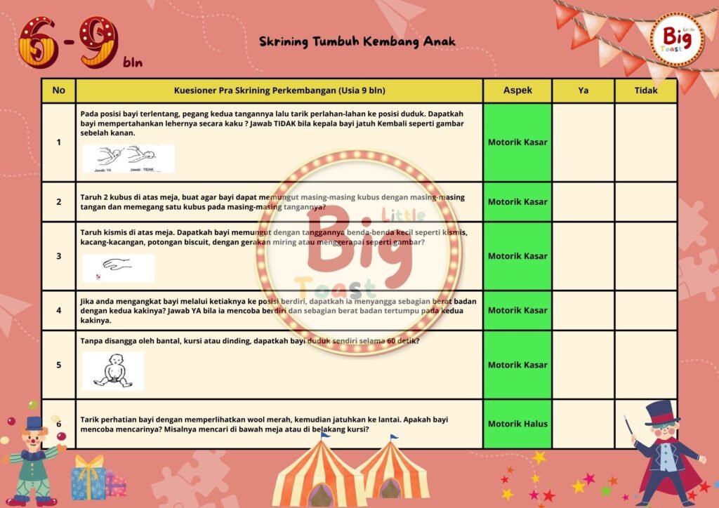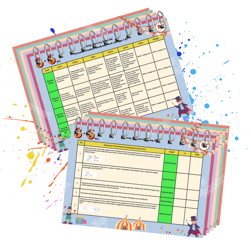 Dilengkapi panduan tahapan perkembangan dan skrining ceklist di akhir masa tahapan untuk memantau apakah anak mencapai milestone umurnya setelah melalui jadwal stimulasinya.